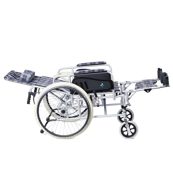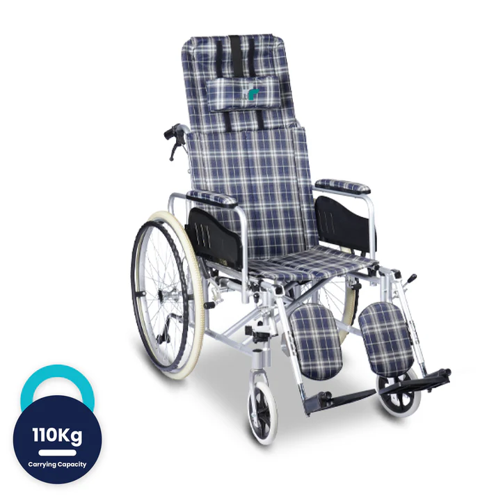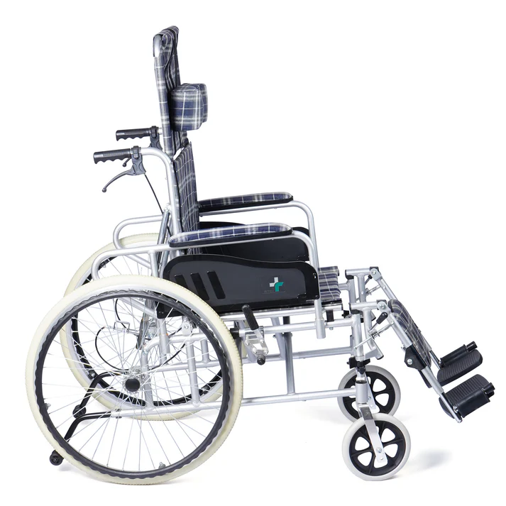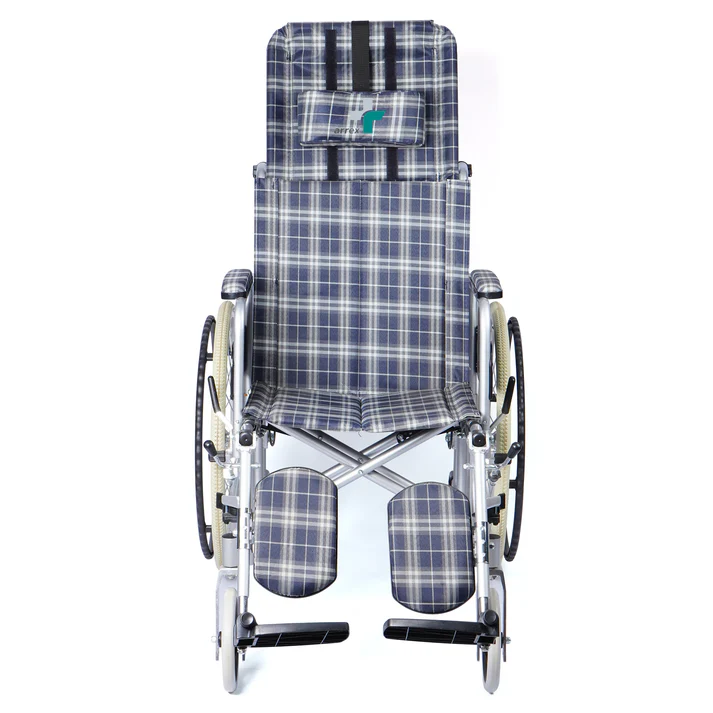 Looking to buy a wheelchair in Mumbai? The Arrex Almos 46 Reclining Wheelchair is a top choice for comfort and mobility. Designed with an aluminium frame, this foldable wheelchair is lightweight yet durable, making it easy to transport and store. Its self-propelled 24” rear wheels allow independent movement, while the push-to-lock brakes ensure safety.