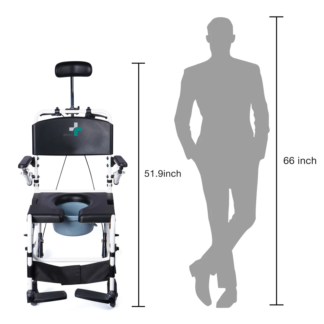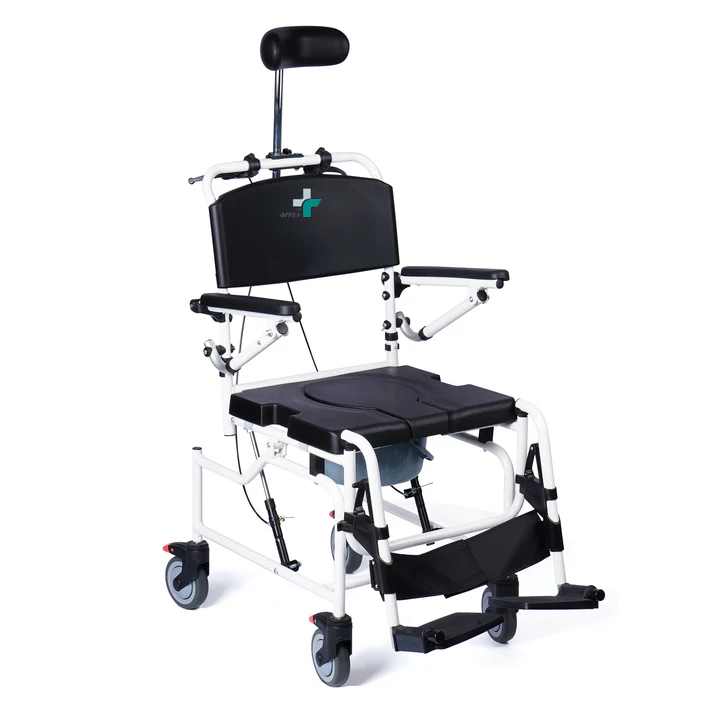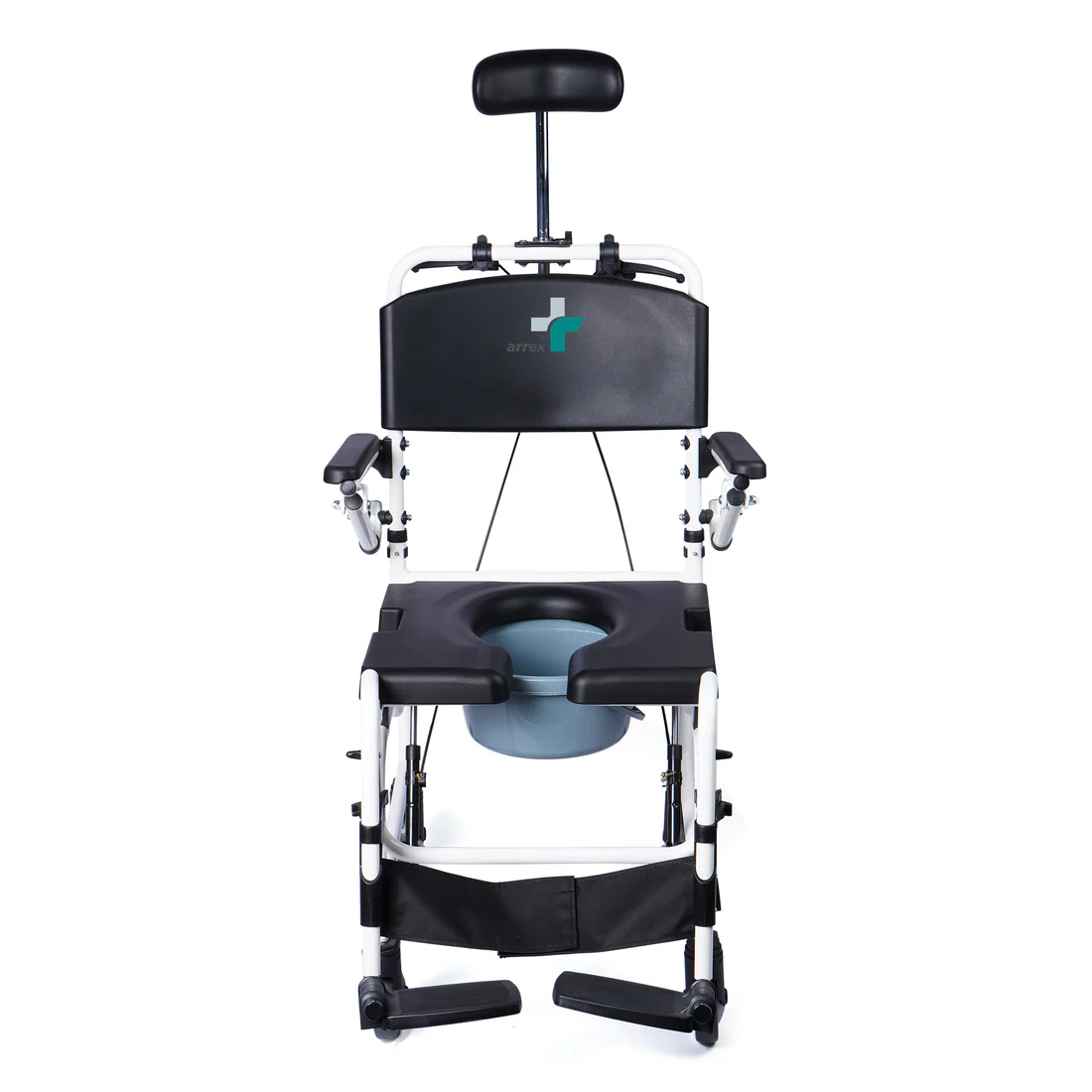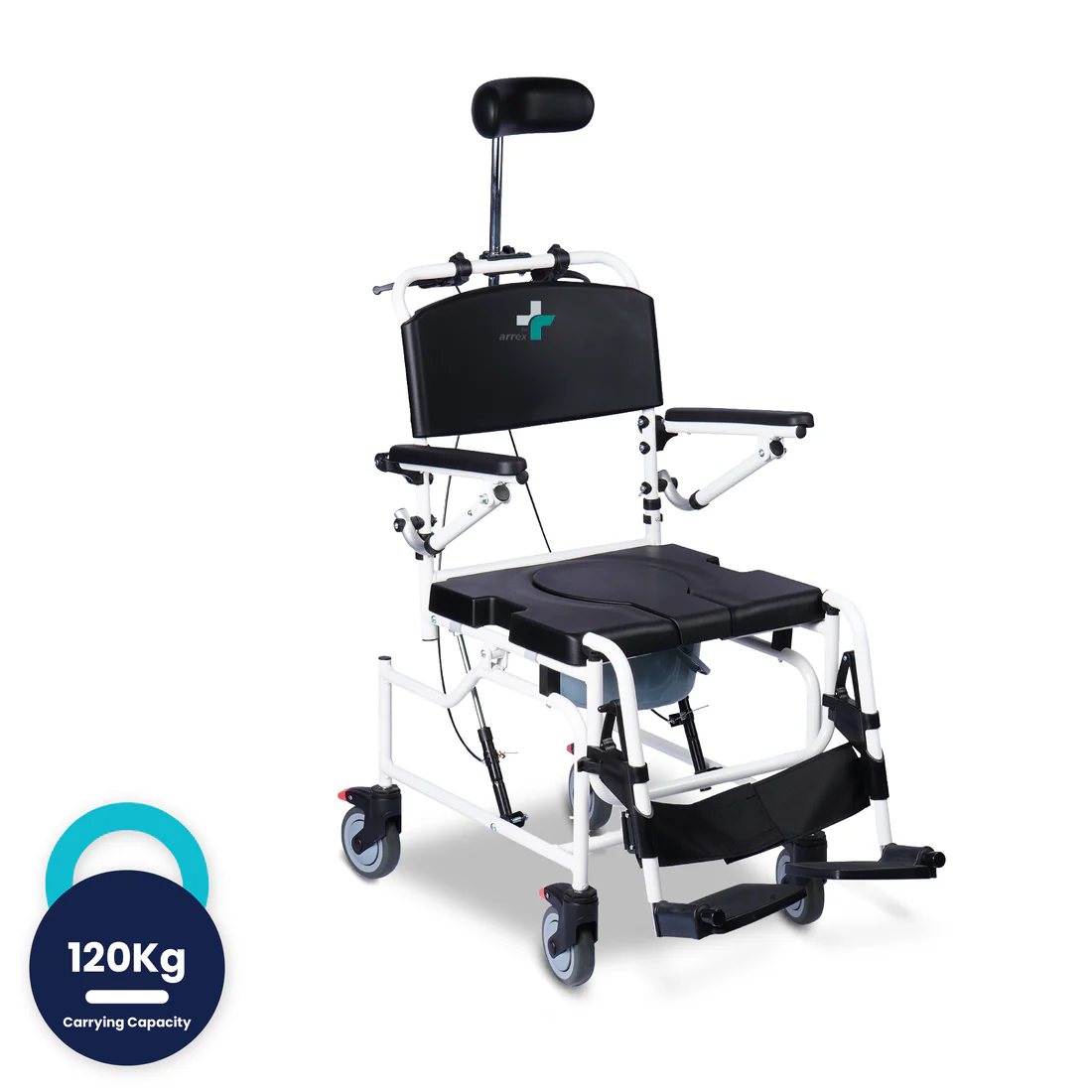The Arrex Effiel Commode Wheelchair is a premium aluminum commode wheelchair designed for maximum comfort, safety, and ease of use. Whether you're looking to buy a commode wheelchair in Mumbai for home or hospital use, this model offers a robust frame, a removable commode PU seat, and individual castor with brakes for added convenience. The flip-up armrest and detachable footrest make transfers effortless, while the solid castors with brakes provide stability on any surface. Its reclining backrest with a height-adjustable headrest ensures a comfortable seating position for long-term use. Ideal for seniors and individuals with mobility challenges, the Arrex Effiel Commode Wheelchair is the perfect blend of durability, safety, and mobility.