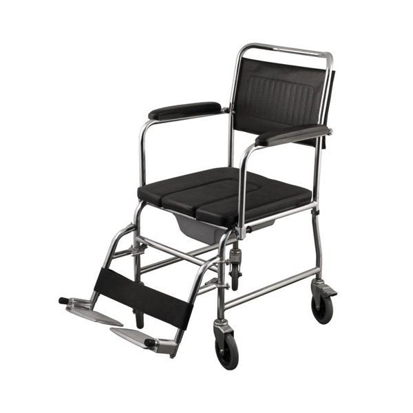 Introducing the Commode Wheelchair Steel 695, a versatile mobility aid designed to provide maximum comfort and convenience. Crafted with a durable chromed steel frame, this transit-type wheelchair offers both strength and reliability. The detachable armrests and footrests, along with the easily detachable back, facilitate effortless storage and transportation. Equipped with solid castors and 6.5’’ front castors, this wheelchair ensures smooth maneuverability. The back castor with brakes enhances safety and control, while the padded armrests optimize patient comfort. Featuring a commode with a removable pot and a cushioned seat with a U cut, this wheelchair offers added functionality and ease of use. Plus, it rolls and fits over most western commodes, providing versatility and convenience. Experience superior comfort and mobility with the Commode Wheelchair Steel 695, an essential aid for individuals and caregivers seeking ease and comfort in their daily lives.
