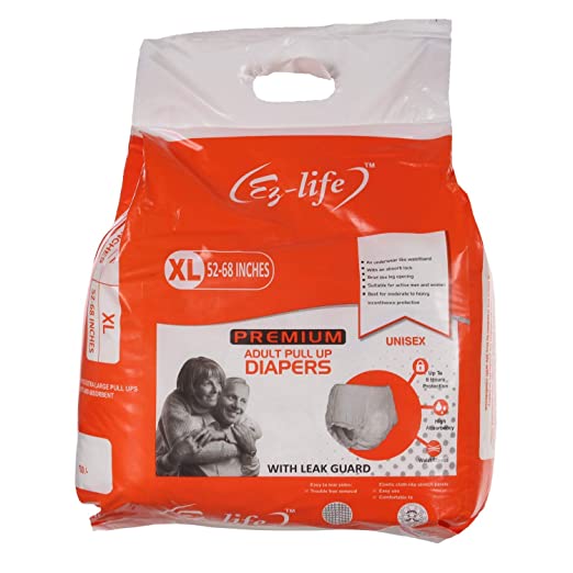 Ezlife Adult pull up diapers provide a Fully breathable Air Plus performance. The Super soft non-woven material ensures optimum comfort and the feeling of wearing. A normal underwear. High number of elastic threads for a firm, flexible fit. Unique Top Dry system, provides a dry surface and rapid absorption of urine keeping skin dry and less irritable. The fit is Secure with high barriers and latex free elastication.An efficient Odour system reduces the risk of unpleasant odour.The product is Dermatologically tested.